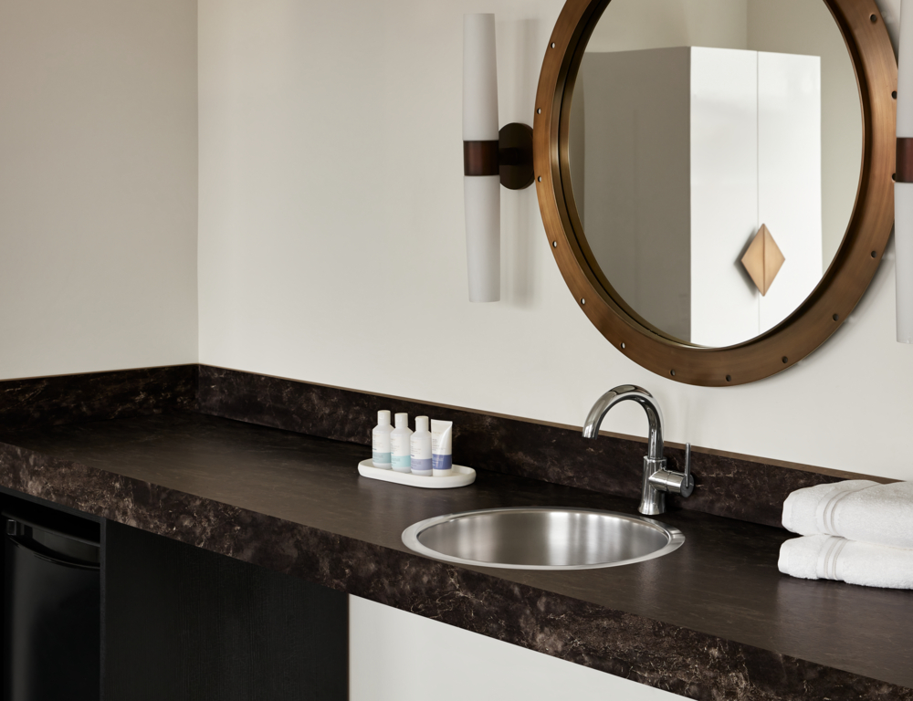 Manufacturers of laminate are actively reducing their environmental impact, with efforts including minimizing carbon emissions as well as reducing the use of energy and water. When choosing products, be curious about whether the manufacturer utilizes renewable energy, employs local production methods, or has a commitment towards long-term durability. In the case of the Formica Group, we aim for carbon neutrality by 2030, with a reduction of 50% of our emissions by 2026. To view full details about Formica's mission towards sustainability, take a look at the Sustainability Position Paper.