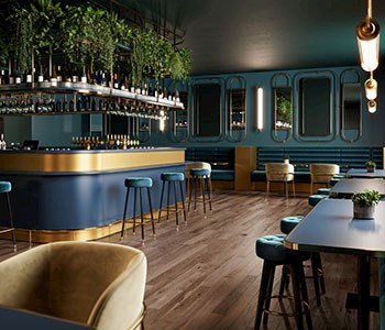 “We’re seeing the blurring of spaces, with current homely themes starting to merge with hospitality trends,” says Nina. “To create a comfortable setting, we’re seeing the introduction of brighter, more tropical tones and a move towards darker hues within hospitality interiors. And this trend stretches throughout hotels, bars, cafes and restaurants.”
