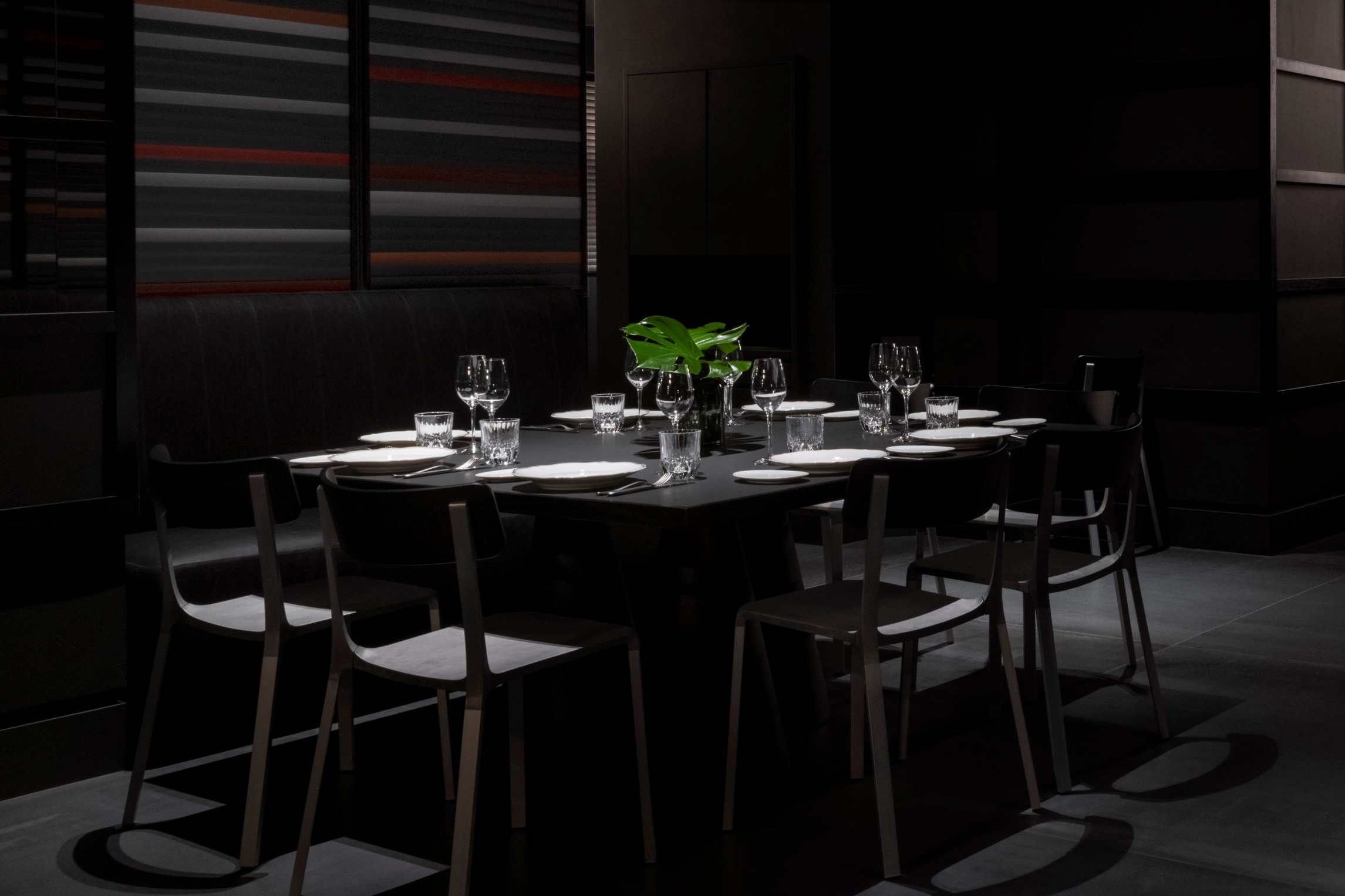 Boiserie FENIX NTM® Nero Ingo. Tables in FENIX NTM® Grigio Antrim.