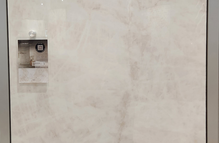 Diseños multifacéticos con sombras de beige, gris pardo, y marrón se mostraron en KBIS en una variedad de exhibiciones de piedra. El laminado 180fx® Hazelnut Travertine ejemplifica esta belleza clásica con corte de vena direccionada para un atractivo moderno.