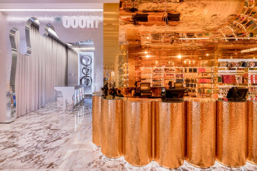 KOBFUJI architects koos voor Terril van Formica Group met Matte 58-afwerking om de 10 meter lange muur achter de sushibar te bekleden. Met Terril werd het klassieke streepjespatroon van de kimono uit de Edo-periode gecreëerd, als eerbetoon aan het Japanse erfgoed dat zo mooi verweven is in de identiteit van het restaurant.