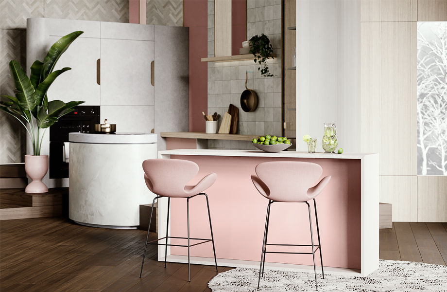 Soothing, calm and inviting – a palette of soft hues and stylish accents. Curved central features and the clever use of surface patterning add character to your place of respite in a bustling city.