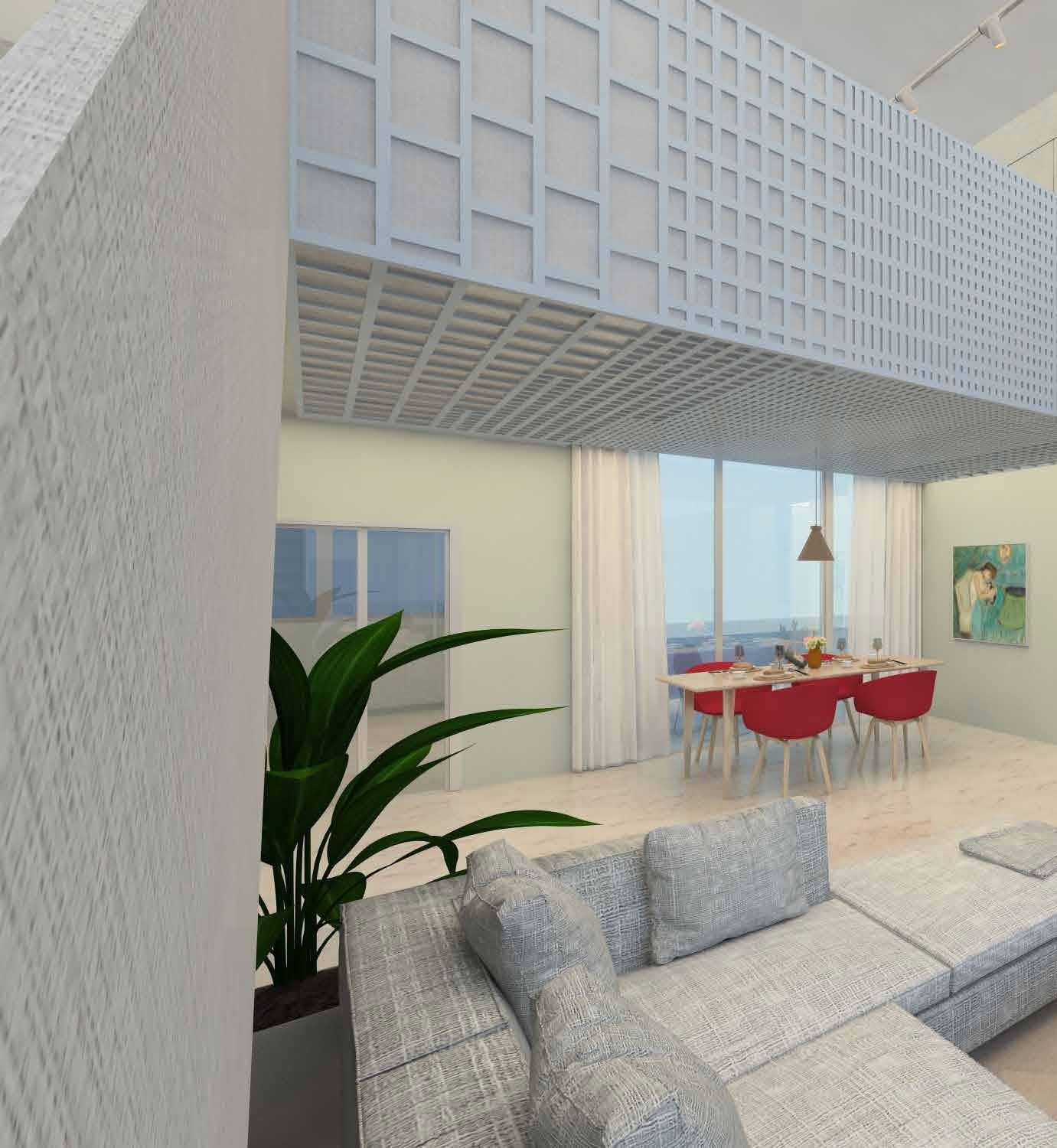接下来,我们将在阁楼式公寓(or 跃层公寓)装潢中呈现此风格的设计元素。 阁楼式公寓是指弹性较大的开放空间,在都会区经常是旧工业大厦转换为住宅用途。 亮点:此设计需要在基材装订前,先将耐火板板材黏贴在基材上。我们已经将耐火板走出仅仅是装饰性表面材的限制 - 现在可以创造客制化的屏风和天花板设计;将这时尚的阁楼式公寓的楼梯护栏变成设计焦点。