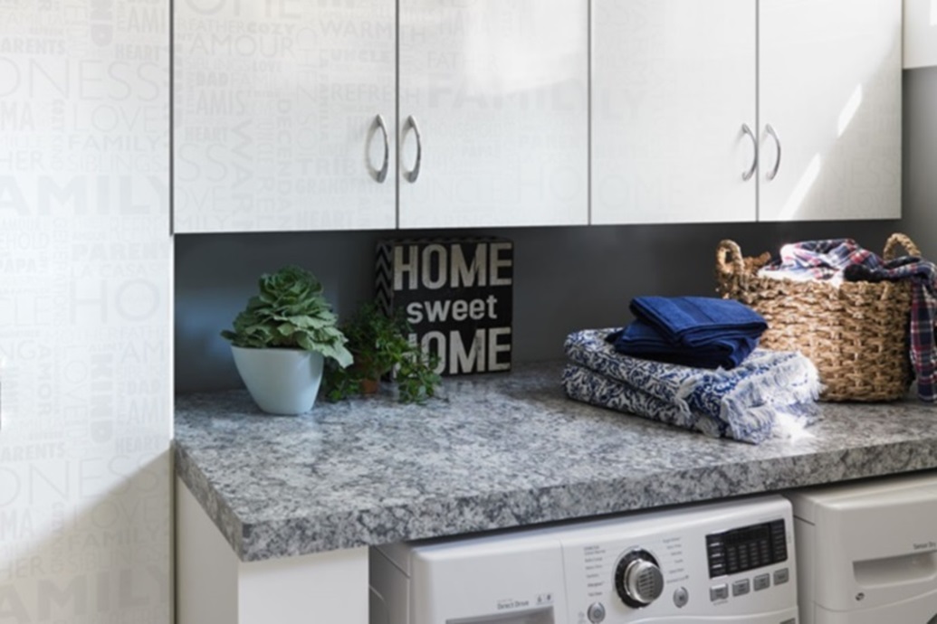 利用可使用的每一个位置,创造一个可折迭和放置衣服的空间。如果您使用的是前装式洗衣机和烘干机,可以在上面搭建一个工作台面。如果考虑到您喜欢的风格和成本,耐火板是洗衣房改建的理想选择。