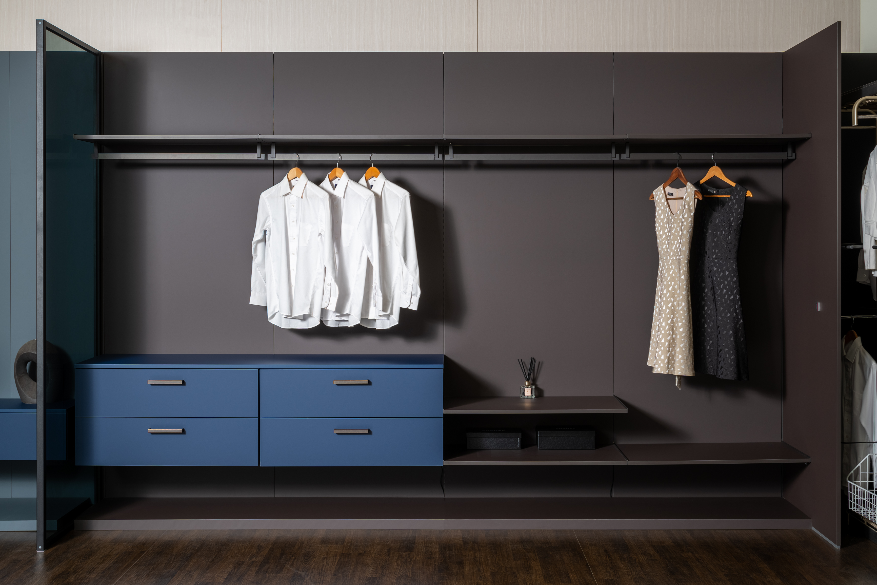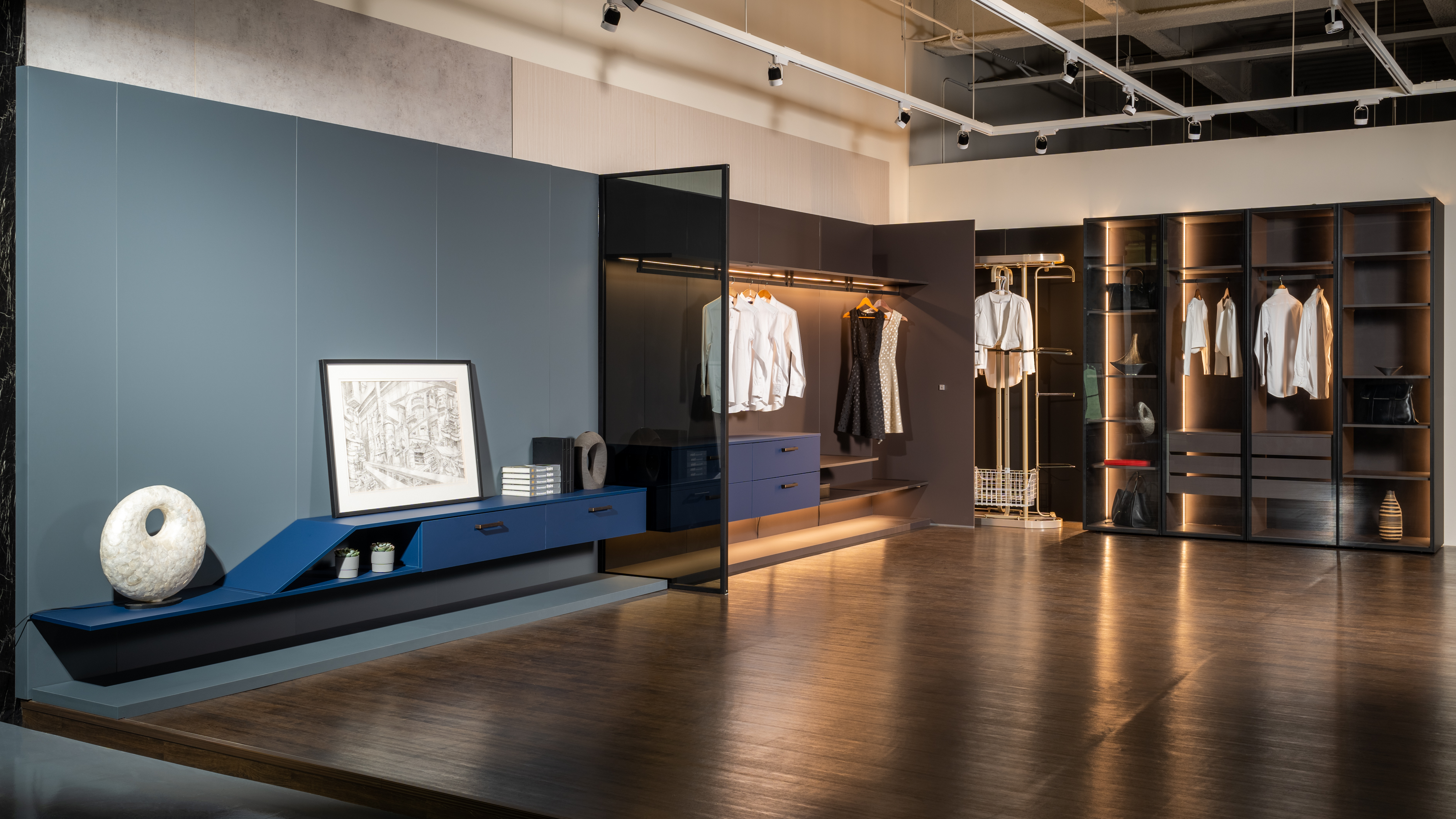 FENIX® 的極致霧面,完美將兩個空間融合,低光線反射的特性,使衣櫃間的打光溫潤明亮,展現不過於耀眼的絕佳質感。