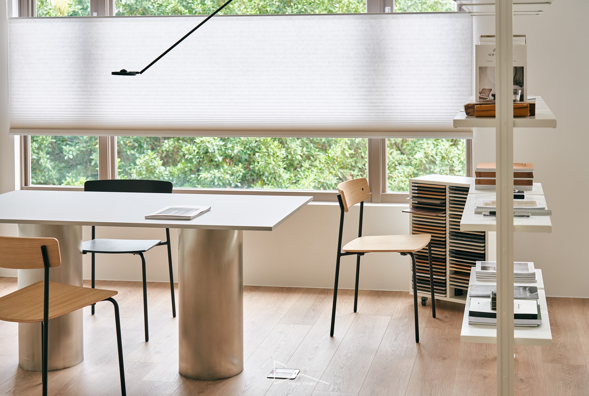 FENIX®霧面溫潤觸感的工作桌,加入木紋與植栽的溫度,在療癒之境激盪創作靈感,成就人人嚮往的棲心之地。