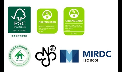 富美家®高級裝飾耐火板、抗倍特®、彩虹心®、金麗®金屬產品系列,已經在亞洲區取得由國際組織GEI(綠色防護環境組織)所核准的GREENGUARD(原稱室內空氣品質認證)及GREENGUARD Gold(原稱室內空氣品質認證 - 兒童與學校)兩項認證。GEI規範出室內用產品、室內空間及建築物之室內空氣品質標準,換言之取得此機構認證之產品,是符合室內空氣品質規範之國際標準的環保室內建材。