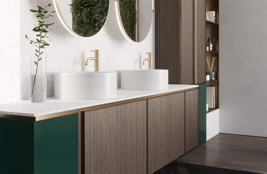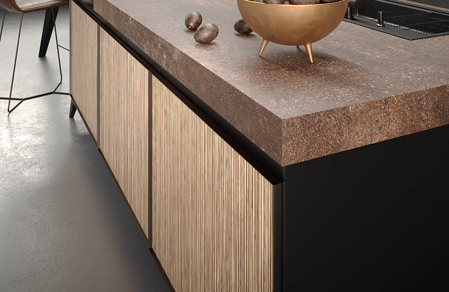 充滿幾何深度的韻律設計,在營造視覺動感的同時,更平衡了整體系列的設計創意。Tuet用紋理細節舞出流暢姿態,並以木紋浮雕循環,型塑出自然舒適的和諧氛圍。 Tuet 僅適合使用於垂直表面。Caravella Light 和 Caravella Dark 兩款新木質飾面可相互搭配使用。